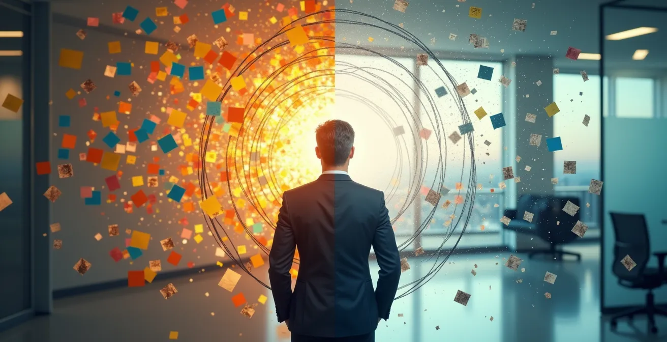 Wie die Darstellung zeigt, geht es darum, einen klaren, persönlichen Arbeitsbereich innerhalb einer chaotischen Umgebung zu etablieren. Eine weitere Taktik ist der „Fokus-Pakt“: Schließen Sie sich mit ein oder zwei vertrauenswürdigen Kollegen zusammen. Vereinbaren Sie, sich gegenseitig zu schützen, indem Sie Anfragen füreinander abblocken („Er/Sie steckt gerade tief in der Konzeptionsphase, ich kann die Frage aber später weiterleiten.“). Das schafft ein kleines, aber wirksames Bollwerk gegen die ständige Flut von Unterbrechungen, die in vielen deutschen Unternehmen, in denen etwa 50% der Firmen agile Methoden nutzen, zur Norm geworden ist.